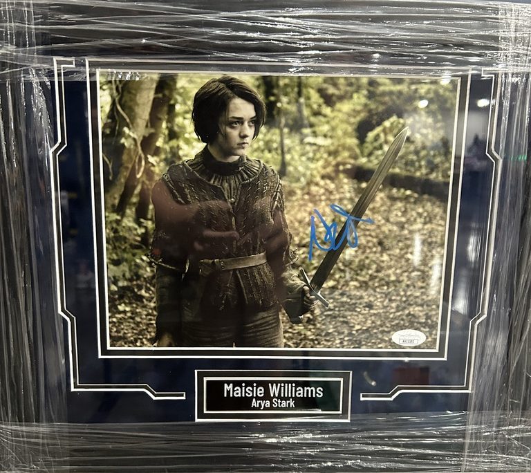 ⚔️ “The North remembers.” This stunning 8×10 photo of Maisie Williams as Arya Stark from Game of Thrones has been personally signed and presented in a professional matte and frame display.